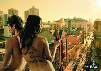This is a raunchy but fun print ad promoting Pepsi Raw, a drink created by PepsiCo made of natural ingredients such as apple extract, plain caramel, acacia trees, sprinkling water, and other natural ingredients.